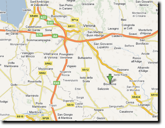 Attraversare la frazione di Villafontana e dopo circa 2,0 Km sarete a Bovolone in via Madonna.